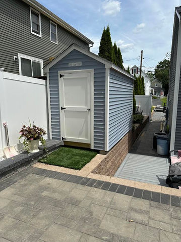 Check out a few of our favorite custom sheds. We made one into a office and the other one added a overhang. The customer added a nice finishing touch to the custom shed with overhang